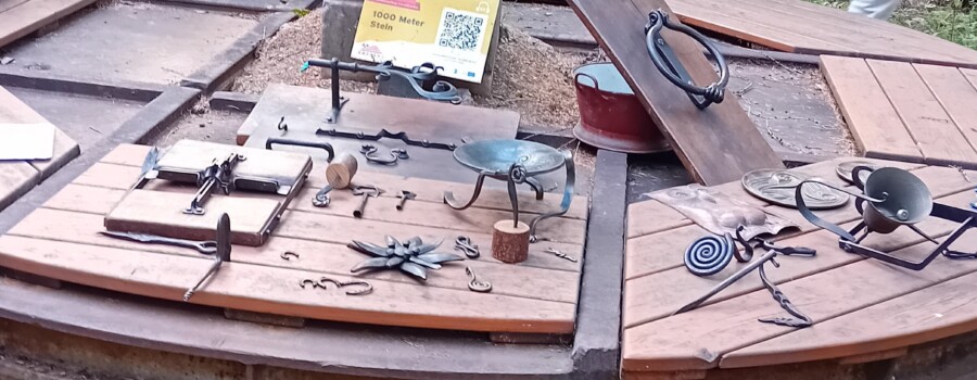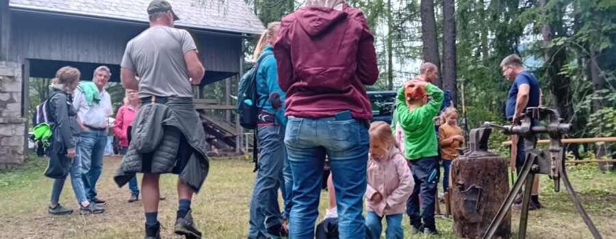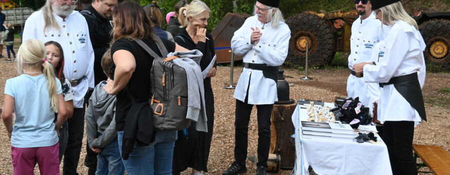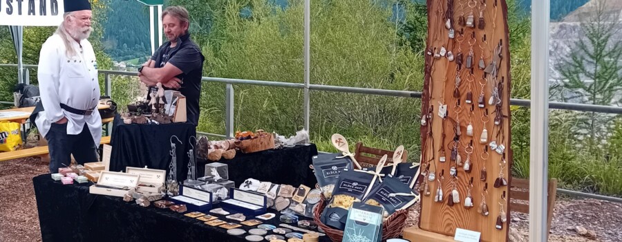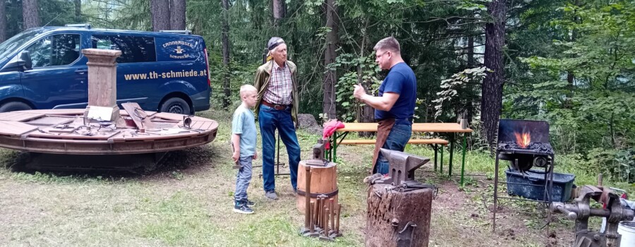 Ein weiteres handwerkliches Highlight war das Schmieden mit Kunstschmiedemeister Thomas Hochstädt von der Niederösterreichischen Eisenstraße. Unter fachkundiger Anleitung konnten Besucher:innen ihr eigenes kleines Kunstwerk schmieden. Vertreter:innen des Schaubergwerkes Oberzeiring präsentierten sich mit ihrer Bergmannstracht stilecht vor der Kulisse des Erzberges und luden Besucher:innen dazu ein ihren eigenen Oberzeiringer Silberpfennig zu prägen.
