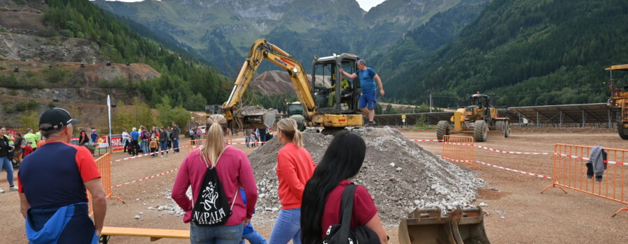 Schon die Anreise war ein Erlebnis: Mit dem 1217 PS-starken Hauly ging es von der Talstation von Abenteuer Erzberg direkt zum Veranstaltungsgelände, wo zahlreiche spannende Bergbau-Stationen auf die Gäste warteten. Große und kleine Technikbegeisterte konnten hier Bergbaumaschinen hautnah erleben – und manche sogar selbst bedienen.