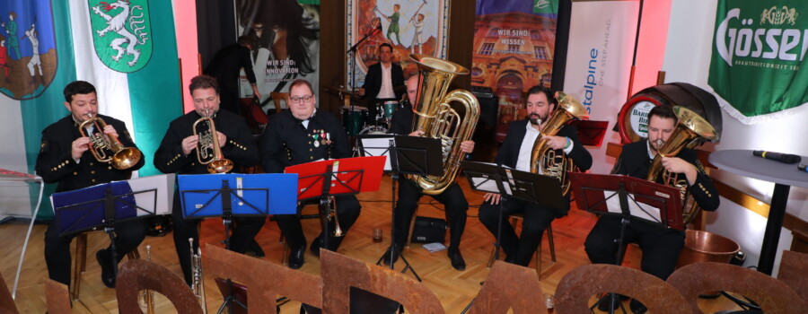 Vordernberg, 25. November 2023: Der offizielle Auftakt der Barbarafeierlichkeiten mit Bieranstich und Ledersprung fand dieses Jahr erstmals gemeinsam mit der Knappschaft Vordernberg statt.
