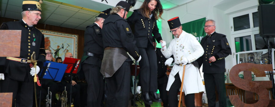 Bevor das Barbarabier 2023 offiziell “o’zapft” wurde, stand für zwei Personen noch eine besonders “sportliche” Prüfung bevor: Die beiden Geschäftsführer der Steirischen Eisenstraße Kornelia Lemmer und Gerfried Tiffner sprangen in diesem Jahr über das Leder in den Ehrenbergmannsstand. Beide versprachen, sich auch in Zukunft mit Herzblut für die Region und die Bräuche der Berg- und Hüttenleute einzusetzen. Die Laudationen hielten der ehemalige Eisenerzer Bürgermeister Christian Berger und Eisenstraßen-Obmann Mario Abl.