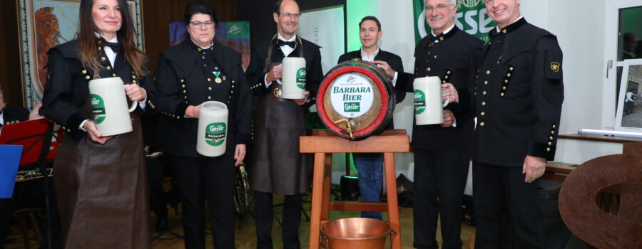 Für seine Verdienste geehrt wurde zudem Günter Speer, der als einzig verbliebenes Gründungsmitglied seit mehr als 35 Jahren im Vorstand des Vereins tätig ist. Er war gemeinsam mit den beiden neuen Ehrenbergleuten auch der Erste, der das neue Berghäckel der Steirischen Eisenstraße überreicht bekam. Unter der Aufsicht von Altbraumeister Andreas Werner erfolgte schließlich der Anstich des wie immer “besten Barbarabieres aller Zeiten”. Traditionell endete die Feier mit Barbaragulasch – dieses Jahr erstmals auch in einer vegetarischen Ausführung – und ausgiebiger Verkostung des braufrischen Barbarabieres. Für die musikalische Umrahmung sorgten Steira 7 sowie die JazzBandits.