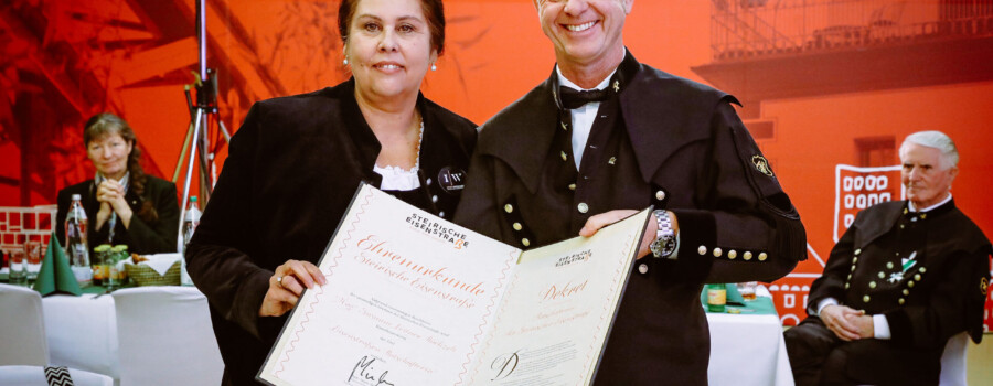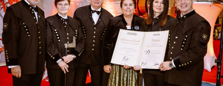 Neue „Frau Ehrenbergmann“ ist seit Sonntag Vbgm. Birgit Sandler. Sie hat die bergmännische DNA sprichwörtlich im Blut – und ihre Großväter waren Bergleute in Leoben-Seegraben, wo sie auch aufgewachsen ist. Den Sprung vom Bierfass in den Ehrenbergmannsstand meisterte sie mit Bravour, die Laudatio hielt ihr Vorgänger Maximilian Jäger, der – ganz im bergmännischen Gedanken – ihre Solidarität und ihren Einsatz für benachteiligte Menschen würdigte. Beinahe auf den Tag genau 20 Jahre, nachdem Susanne Leitner-Böchzelt zur Geschäftsführerin des Museumsverbunds ernannt worden war, wurde sie als neue Eisenstraßenbotschafterin mit einer neuen – diesmal ehrenamtlichen – Funktion betraut. Sie wird sich auch in Zukunft mit all ihrer kunst- und kulturhistorischen Erfahrung, die ihre Laudatorin Kornelia Lemmer hervorstrich, für die Eisenstraße stark machen.