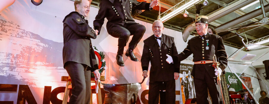 Leoben/Eisenerz, 17.11.2024. Der Auftakt der diesjährigen Barbarafeierlichkeiten der Steirischen Eisenstraße fand am 17. November erstmals im Kulturquartier Leoben statt. Über das Leder in den Ehrenbergmannsstand sprang Leobens Vizebürgermeisterin Birgit Sandler, die langjährige Leiterin des Museumscenters Leoben, Susanne Leitner-Böchzelt wurde zur Eisenstraßenbotschafterin ernannt. Wie jedes Jahr wurde zu diesem Anlass auch das Barbara-Bier 2024 offiziell „o´zapft“.