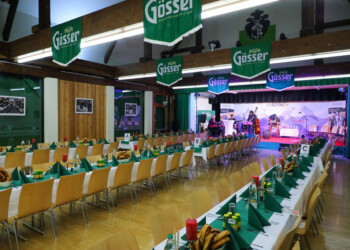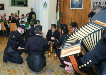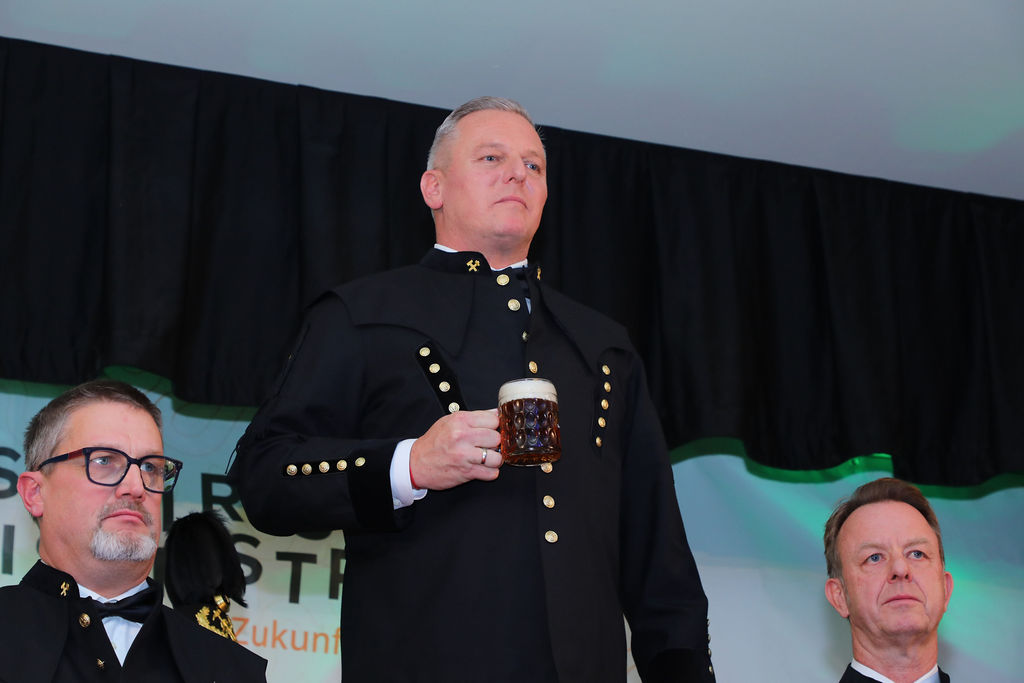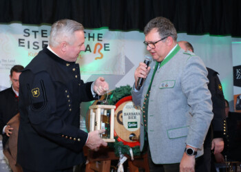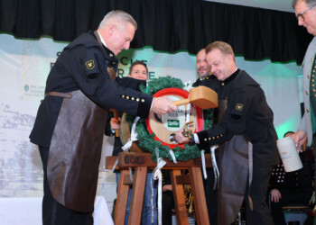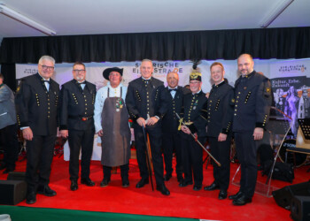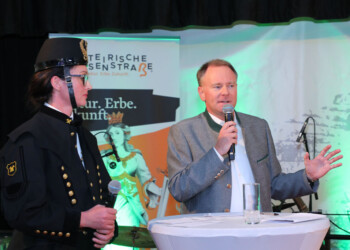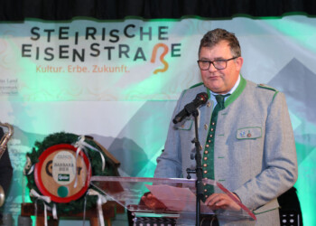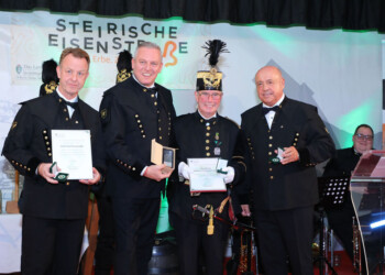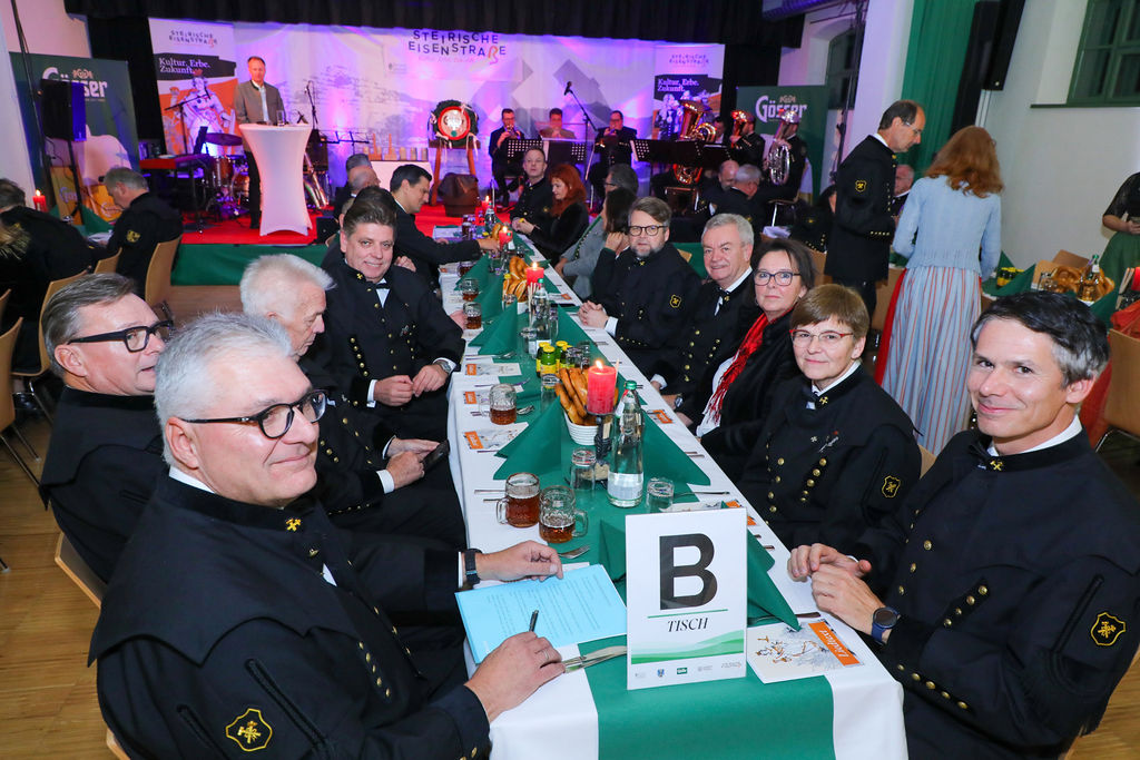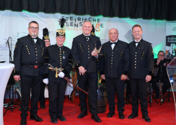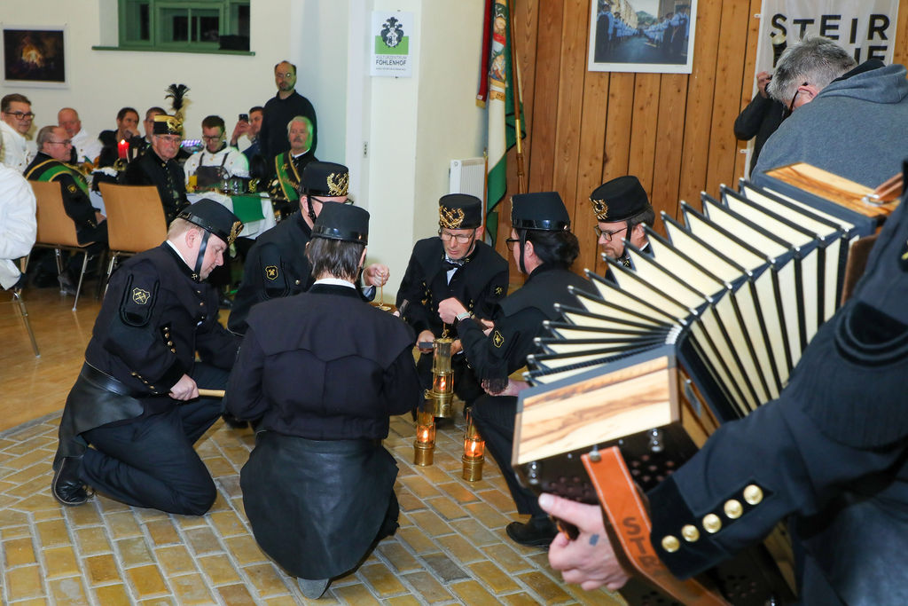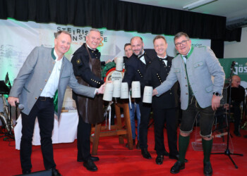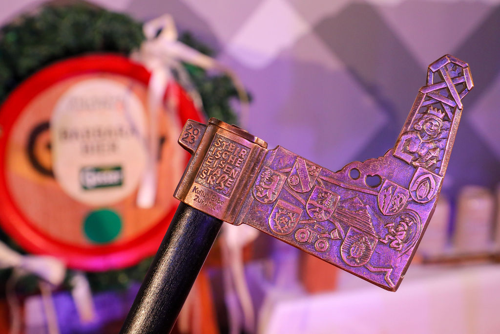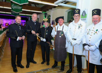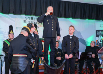 Erstmals beging der Verein Steirische Eisenstraße den Barbaratag am 4. Dezember 2025 im Liesingtal – im historischen Fohlenhof in Kalwang. Höhepunkt des Abends war die Aufnahme von Landeshauptmann Mario Kunasek in den Ehrenbergmannsstand. Tra-ditionell wurde bei dieser Gelegenheit auch das Barbara-Bier 2025 feierlich angezapft. Zahlreiche Ehrengäste folgten der Einladung des Vereins, darunter Nationalrat Franz Jantschner, Lan-desrat Hannes Amesbauer, die Klubobleute Marco Triller und Johannes Schwarz, LAbg. Cornelia Izzo, der ehemalige Lhptm.-Stv. Anton Lang, Bezirkshauptmann Markus Kraxner, ORF-Steiermark-Chef & Eisenstraßenbotschafter Gerhard Koch sowie der Rektor der Montanuniversität Leoben, Peter Mo-ser. Neben Hausherrn Mario Angerer waren zahlreiche weitere Bürgermeister der Region anwesend. Mit Eisenstraßenobmann Mario Abl, Mario Kunasek, Mario Angerer und Moderator Mario Fraiss standen diesmal gleich Marios im Mittelpunkt des Geschehens. Mario Abl dankte in seiner Anspra-che insbesondere den Knappschaften, die das Rückgrat der als immaterielles UNESCO-Erbe aner-kannten bergmännischen Traditionen sind. Ebenso würdigte er die Brauerei Göss für das eigens ge-braute Barbara-Bier. Abl unterstrich den hohen Stellenwert von Zusammenhalt und regionaler Ko-operation, gerade in herausfordernden Zeiten. Die Steirische Eisenstraße sei ein wichtiges Netzwerk und eine starke Allianz für die Region, die vieles möglich mache – dies zeige etwa auch die aktuelle Bewerbung der Österreichischen Eisenstraße um Anerkennung als UNESCO-Welterbe, die im Sep-tember in Paris eingereicht wurde. Um 19:50 Uhr war es schließlich so weit: Nach einer Laudatio von voestalpine-Betriebsratsvorsitzen-dem Josef Gritz vollzog Landeshauptmann Mario Kunasek den symbolischen Sprung „über das Le-der“ vom Bierfass in den Ehrenbergmannsstand – sichtlich bewegt und begleitet von seinem Wahl-spruch: „Stolz, mutig, stark – für unsere Heimat, die Steiermark.“ In seiner Dankesrede betonte er, sich weiterhin für die lebendige Tradition der Eisenstraße und die Region einsetzen zu wollen. Nach dem offiziellen Anstich durch Braumeister Michael Zotter herrschte Einigkeit: Auch heuer sei es „das beste Barbarabier aller Zeiten“. Den festlichen Ausklang bildeten das traditionelle Barbaragu-lasch sowie die Verkostung des frisch gebrauten Bieres, das ausschließlich in den Gaststätten der Re-gion erhältlich sein wird. Für musikalische Akzente sorgten Steira 7 und die Jazz Bandits. Ergänzt wurde das Programm durch Darbietungen der Knappschaften Leoben-Seegraben und Radmer.
