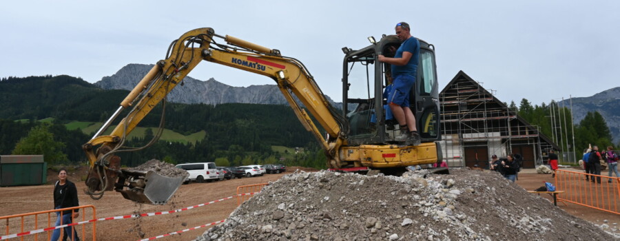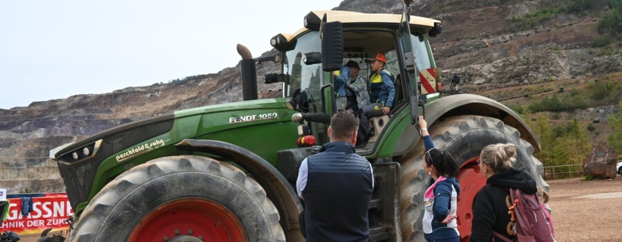 Schon die Anreise war ein Erlebnis: Mit dem 1217 PS-starken Hauly ging es von der Talstation von Abenteuer Erzberg direkt zum Veranstaltungsgelände, wo zahlreiche spannende Bergbau-Stationen auf die Gäste warteten. Große und kleine Technikbegeisterte konnten hier Bergbaumaschinen hautnah erleben – und manche sogar selbst bedienen.